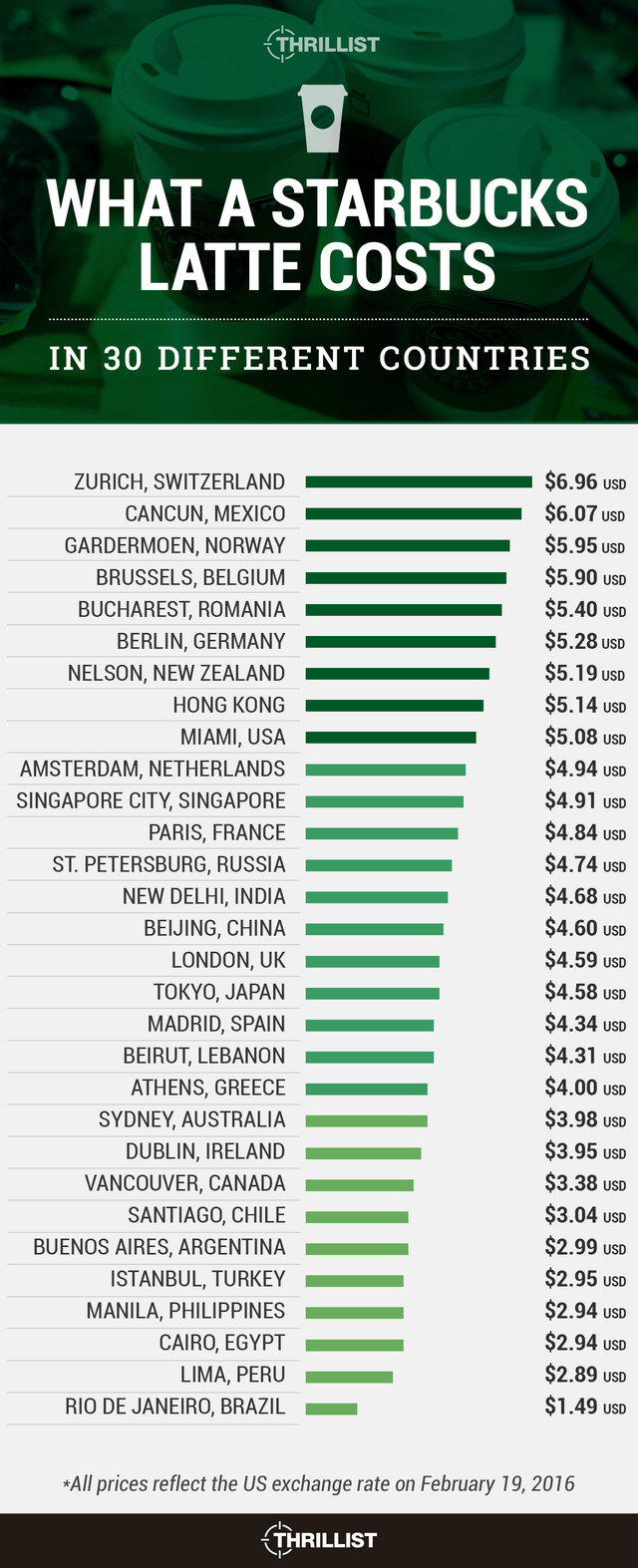 The total cost at our neighborhood starbucks ran us $2.65 instead of nearly $5: